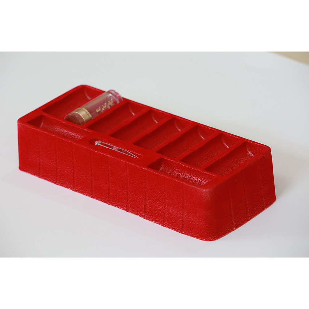 厂家供应PS大红植绒吸塑内托保健品化妆品红色吸塑托纸盒内衬